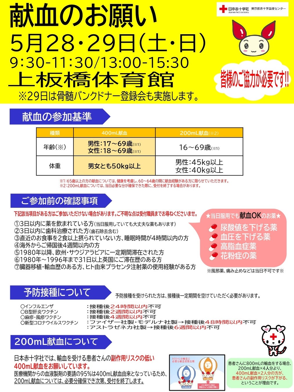 公益社団法人東京青年会議所は5月28日・29日に上板橋体育館にて献血活動を行います