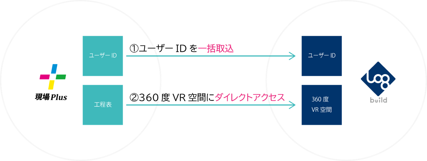 ② 「現場Plus」の工程表から「Log System」の360度VR空間にダイレクトアクセス