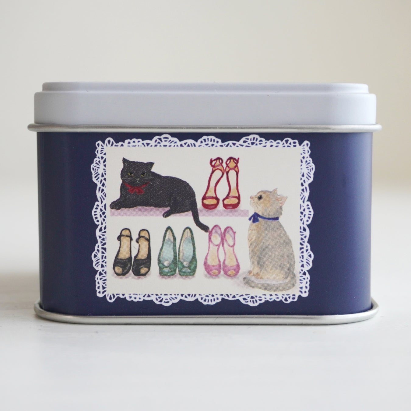 缶の側面に描かれた、おしゃれを楽しむ2匹の"猫"もポイント。