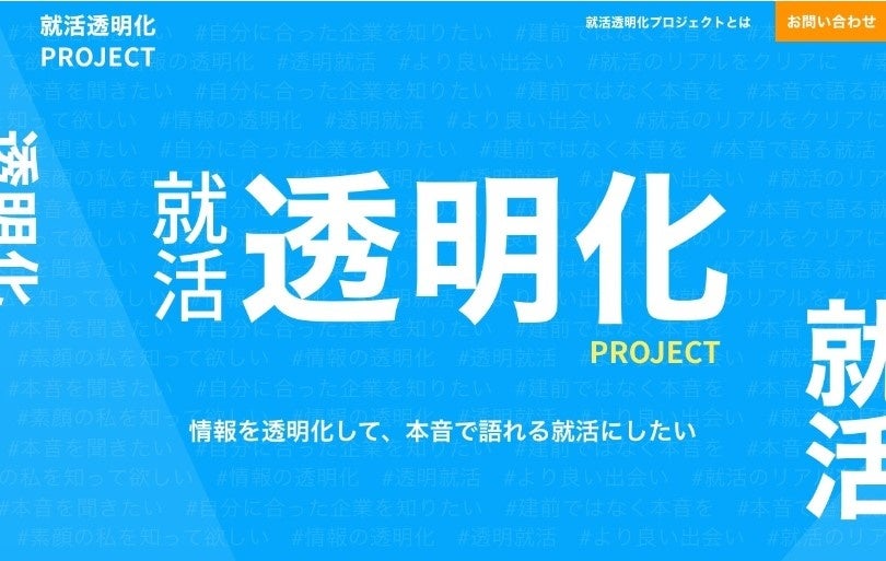 この度、就職活動による企業・学生双方の情報を「透明化」し、企業と学生のより良い出会いを生み出したいという想いから「就活透明化プロジェクト」を新たに始動いたします。