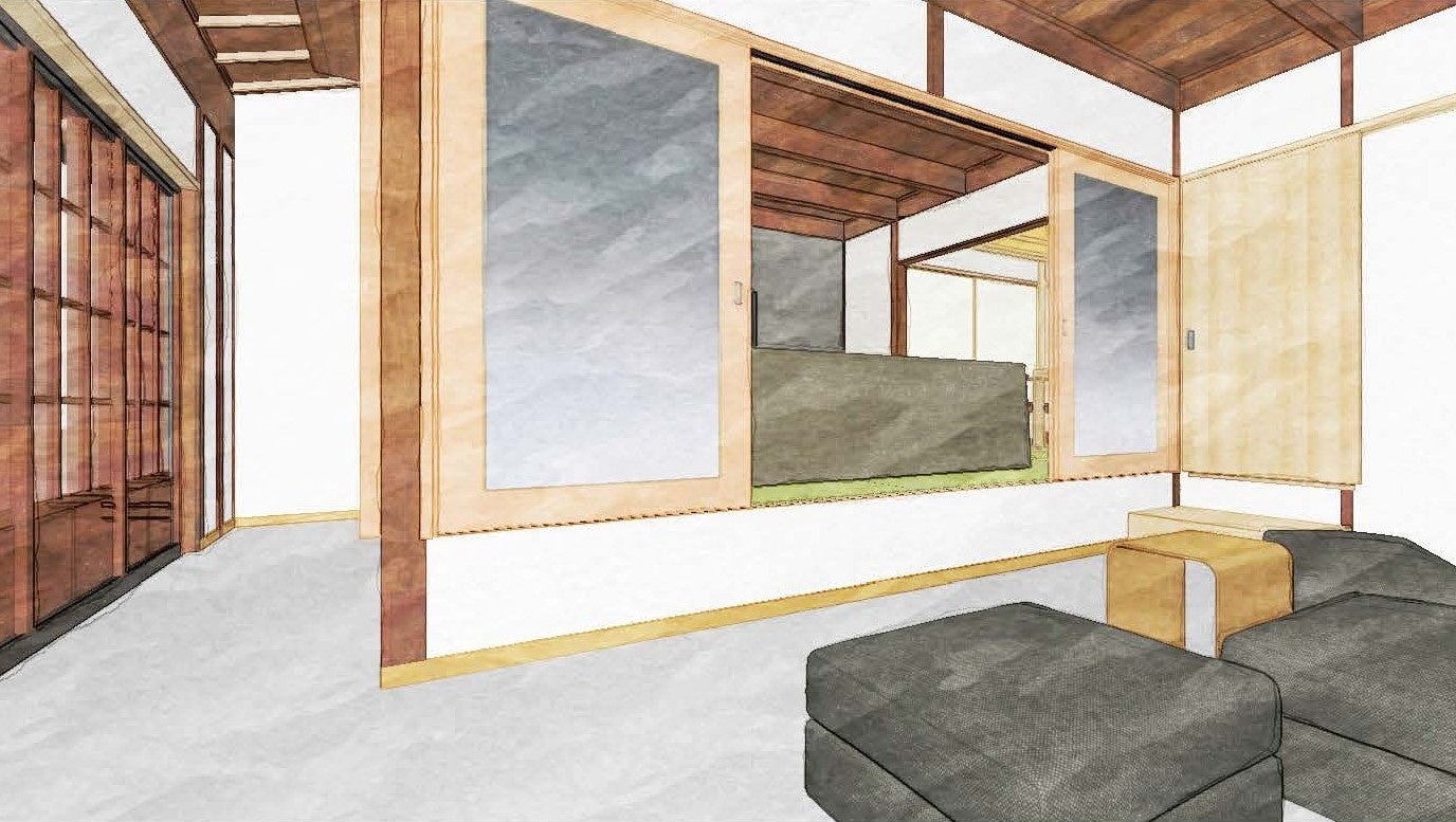 古民家をリノベーションし、梁や柱など古き良き建築様式を尊重しながら、最新の水回りや空調設備、Wi-Fi環境などを導入し、快適な滞在を提供します。