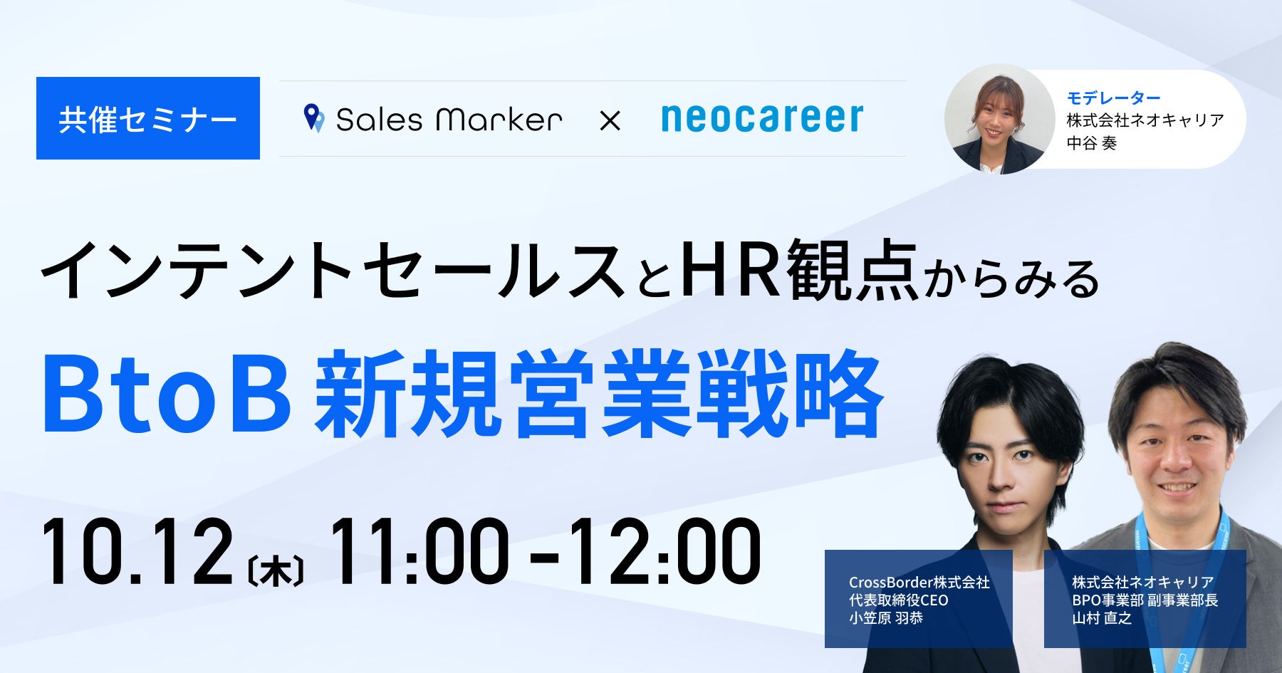 【Sales Marker】10/12(木)開催、ネオキャリア・CrossBorder 共催ウェビナー インテントセールスとHR観点で見るBtoB新規営業戦略