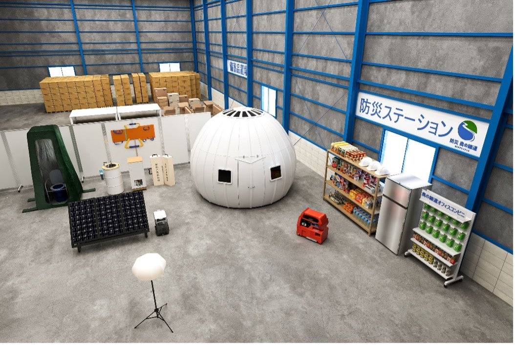 防災ステーションは、空き倉庫や自社倉庫の空きスペース、空き家、遊休地など、さまざまな土地や建物を活用することで実現できます。地域防災モデル「防災奥の細道」実行委員会事務局では、企業の遊休地対策や福利厚生として防災ステーションを推進します。DIY型ドームハウス、防災備蓄用品、発電機・蓄電池などのエネルギー対策用品と、オフィスコンビニ(心幸グループの「オフめしイート&ストック」「ザ仕入隊」サービス)などを組み合わせたパッケージモデルも提供します。これにより、各地域の民間企業がSDGsの一環として地域に貢献できる地域防災モデルを提案していきます。