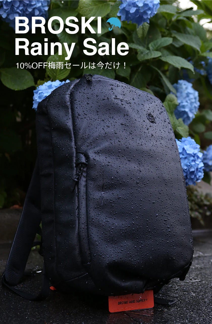 梅雨の季節も、快適に、自分らしく。 バッグブランド「BROSKI AND SUPPLY」は、雨の日のお出かけにぴったりな防水・撥水仕様の機能性バッグ4種を、期間限定で10%OFFにて販売いたします。