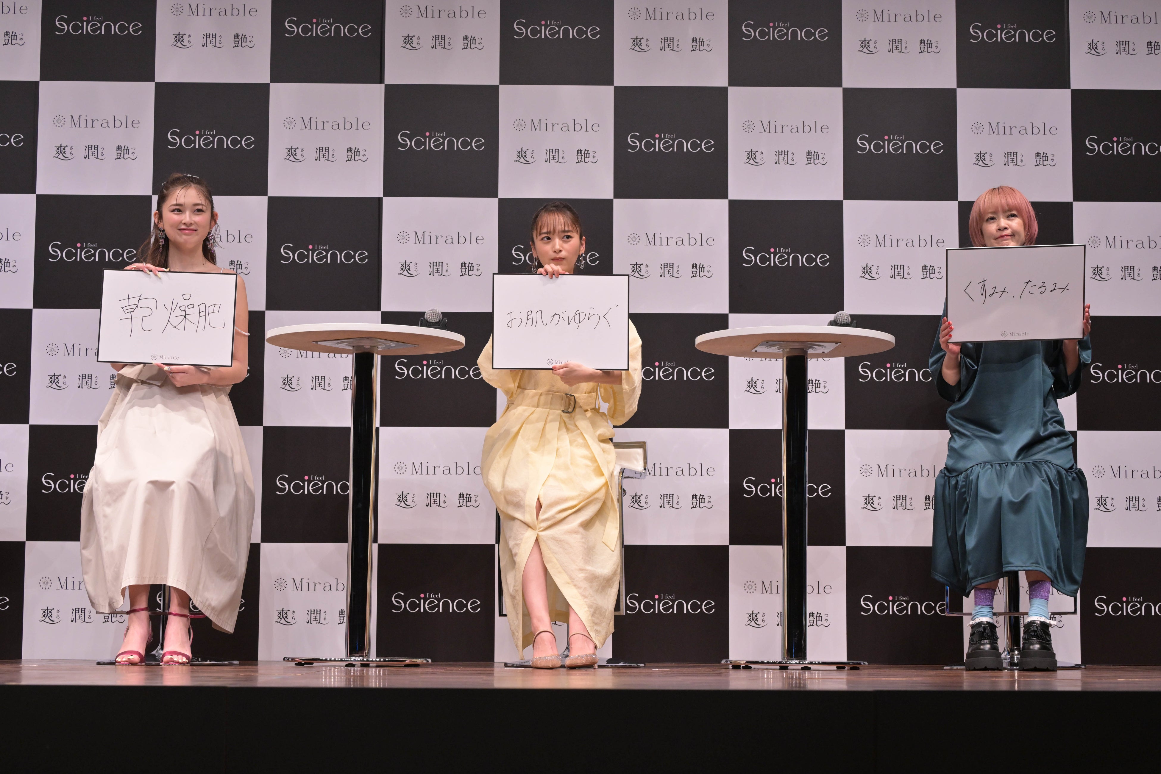 「ミラブルエイジングシリーズ」の商品コンセプトでもある「世代別」にちなみ、50代を代表して松嶋尚美さん、30代を代表して近藤千尋さん、20代を代表してゆうちゃみさんが登場。