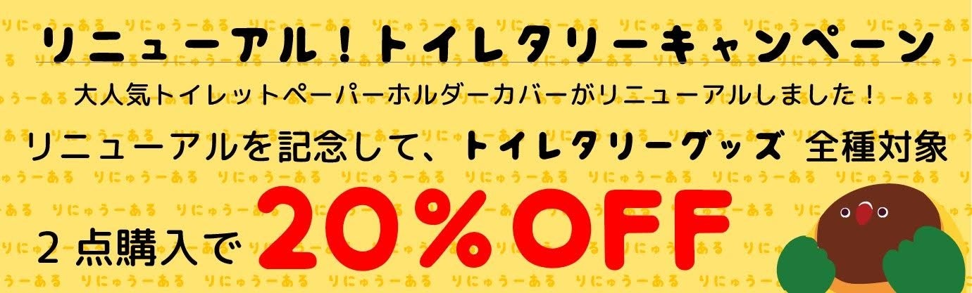 トイレットペーパーホルダーカバーのリニューアルを記念し、トイレタリーグッズ全種を対象にしたセールを実施中です。