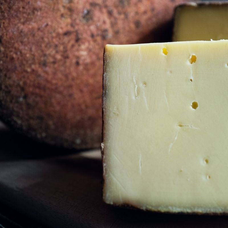 放牧で牧草の干し草を食べて育った牛のミルクのチーズ。8ヶ月以上丁寧に熟成されています。