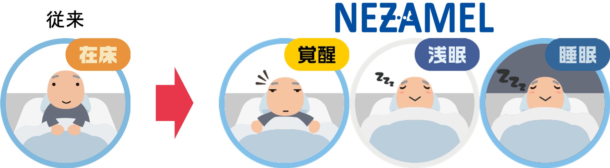 ANSIELは、当社が独自開発した高精度センサーを搭載し、ベッドのマットレス下に設置することで、ベッド上の要介護者の動きを検知・解析できる見守り支援機器です。起き上がりなどのベッド上での動きの検知と、心拍・呼吸や在床・不在などのライフログが取得できる機能を搭載し、2020年の発売以降、多くの介護施設で採用いただいてきました。このたび、より多くのご要望にお応えするべく、ANSIELのハードはそのままで、ソフトウェアをアップグレードすることにより「覚醒」「浅眠」「睡眠」状態を、検知・モニタリングできるサービスを開発・発売しました。この拡張機能により、利用者居室への夜間訪室回数の削減ができ、介護士の業務負担軽減と、利用者の安眠時間確保につなげることが期待できます。