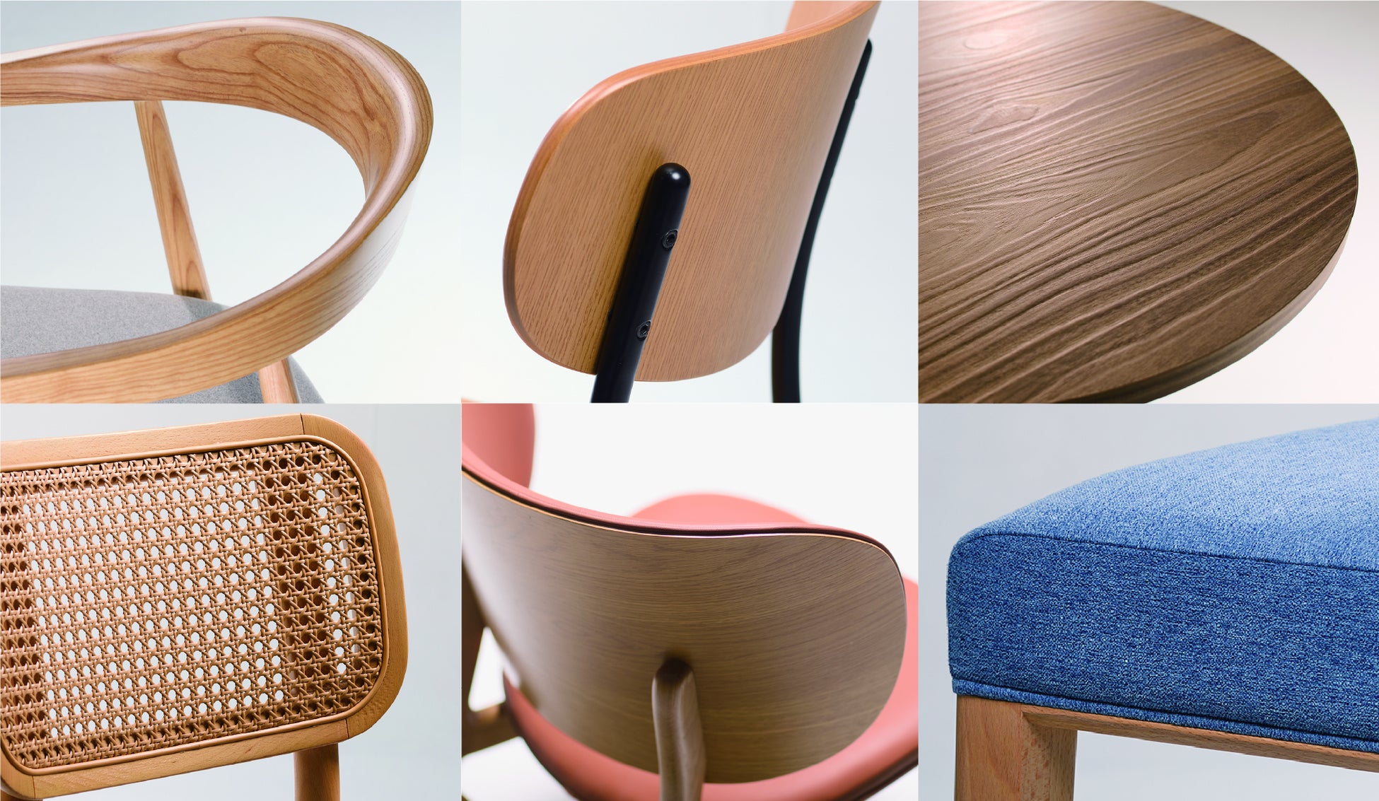 空間にやさしく馴染みながら、五感にさりげなく響く“ちょうどいいユニークさ”をもつコントラクト家具シリーズへと進化しています。