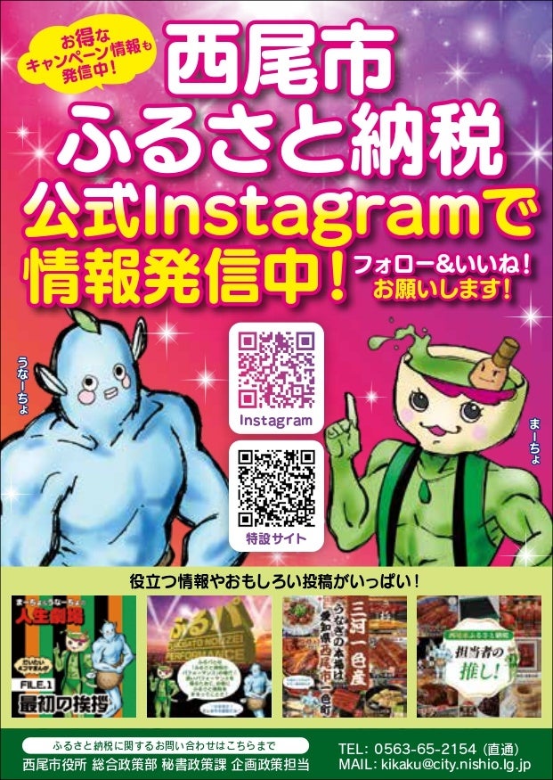 今後も、西尾市ふるさと納税返礼品の魅力を随時発信していくだけでなく、ふるさと納税に関する有益な情報発信、「まーちょ」「うなーちょ」の掛け合いがクセになるだいたい4コママンガの投稿など、西尾市ふるさと納税のファンになっていただけるよう、魅力的な内容を投稿していきます。