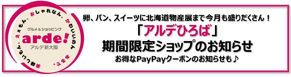 話題性の高いお店がかわるがわる出店するアルデひろばの新ネタを中心に、アルデ新大阪のイベント情報等についてお知らせいたします!