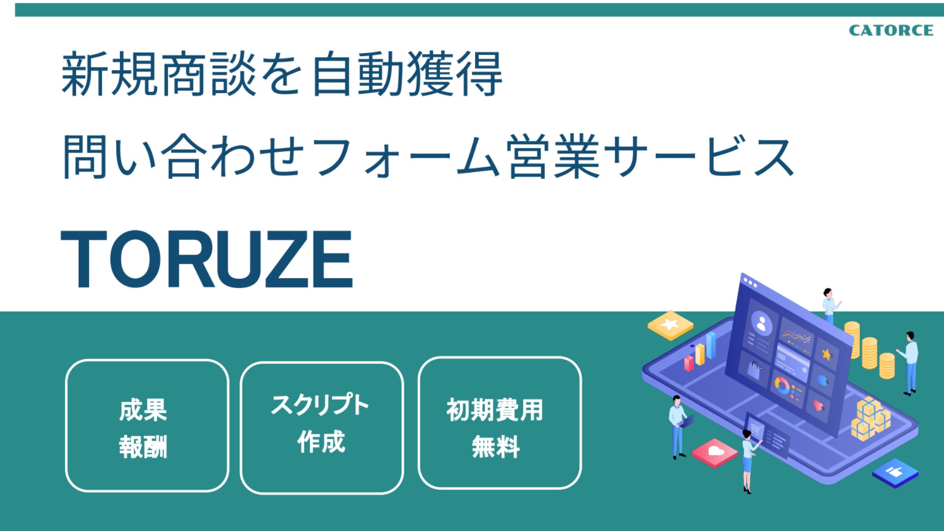 株式会社カトルセ(本社:東京都中央区、代表取締役:橋本健太郎、以下カトルセ)は新規商談を自動獲得するための問い合わせフォーム営業サービス【TORUZE】をリリースいたしました。