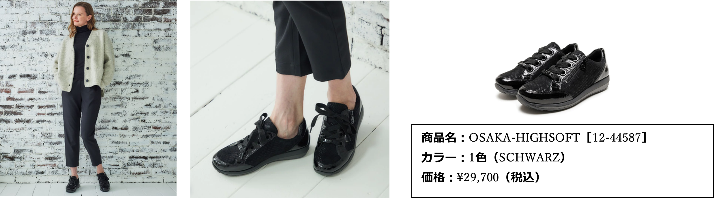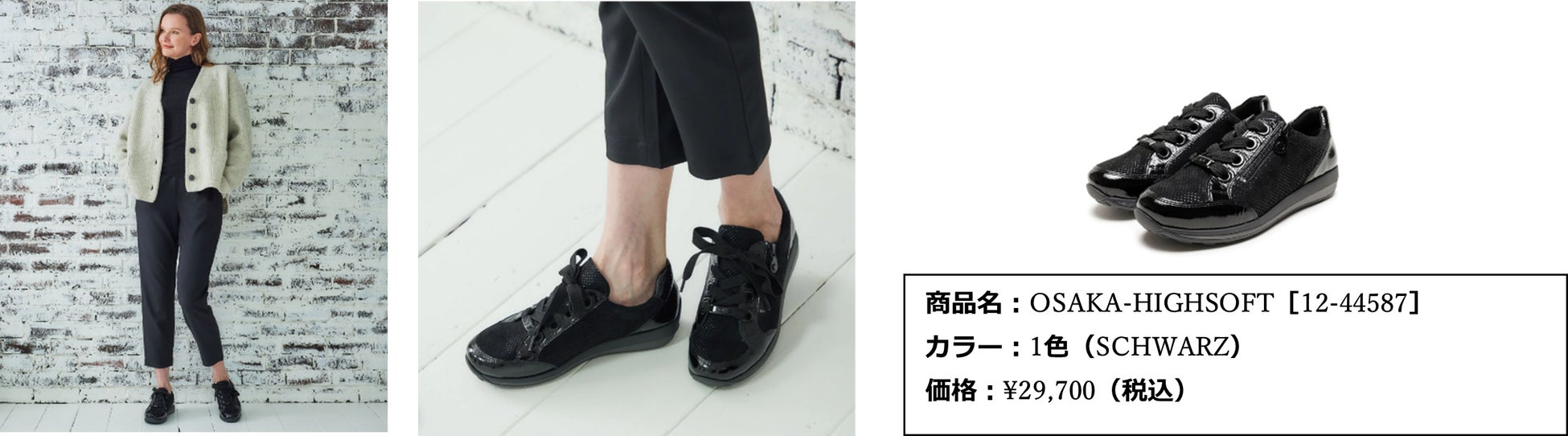 araといえば【OSAKA】というほど、履き心地の良さからリピート買いをされる方も多い、コロンとまあるいフォルムが愛らしいデザイン。ara独自のHI-SHOFT構造によりホールド感があるのにふわふわな履き心地。履き心地の良い1足があれば、心強いですね。