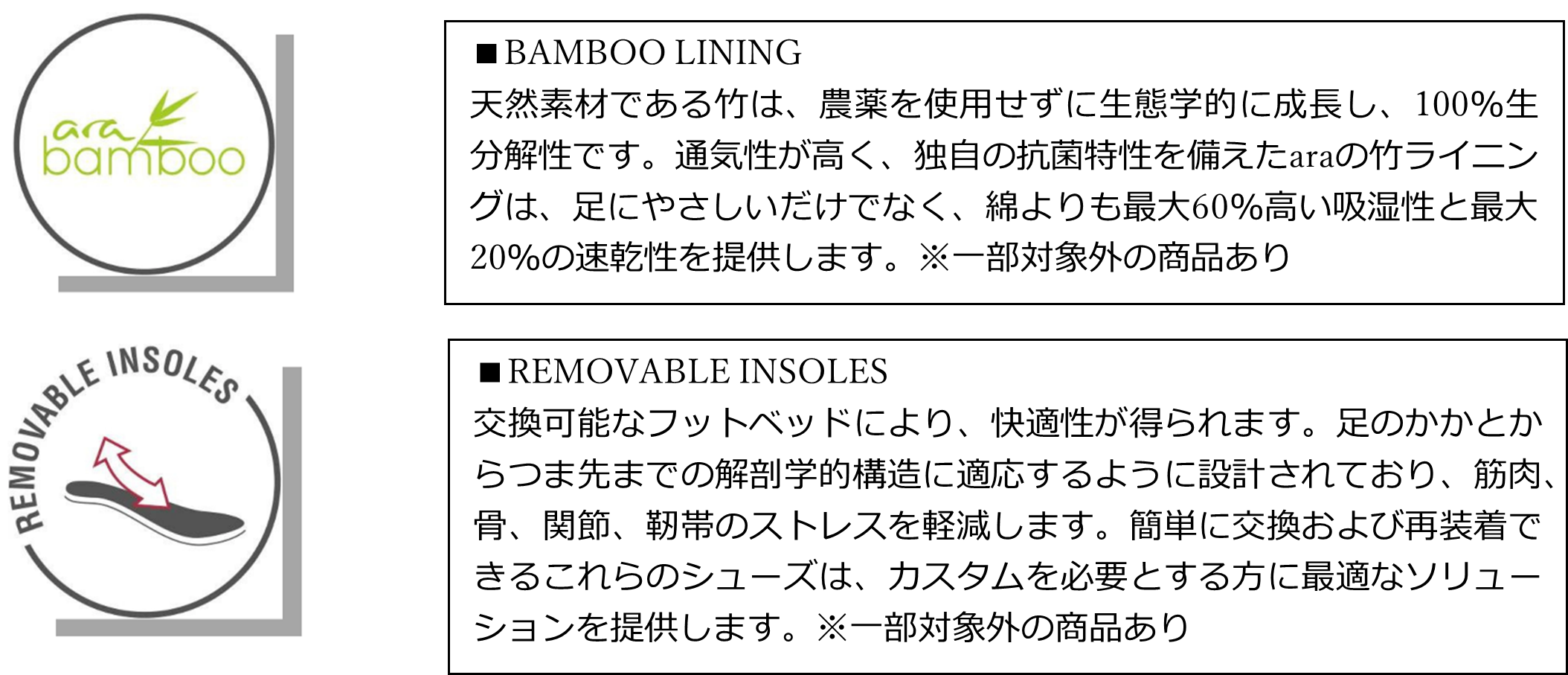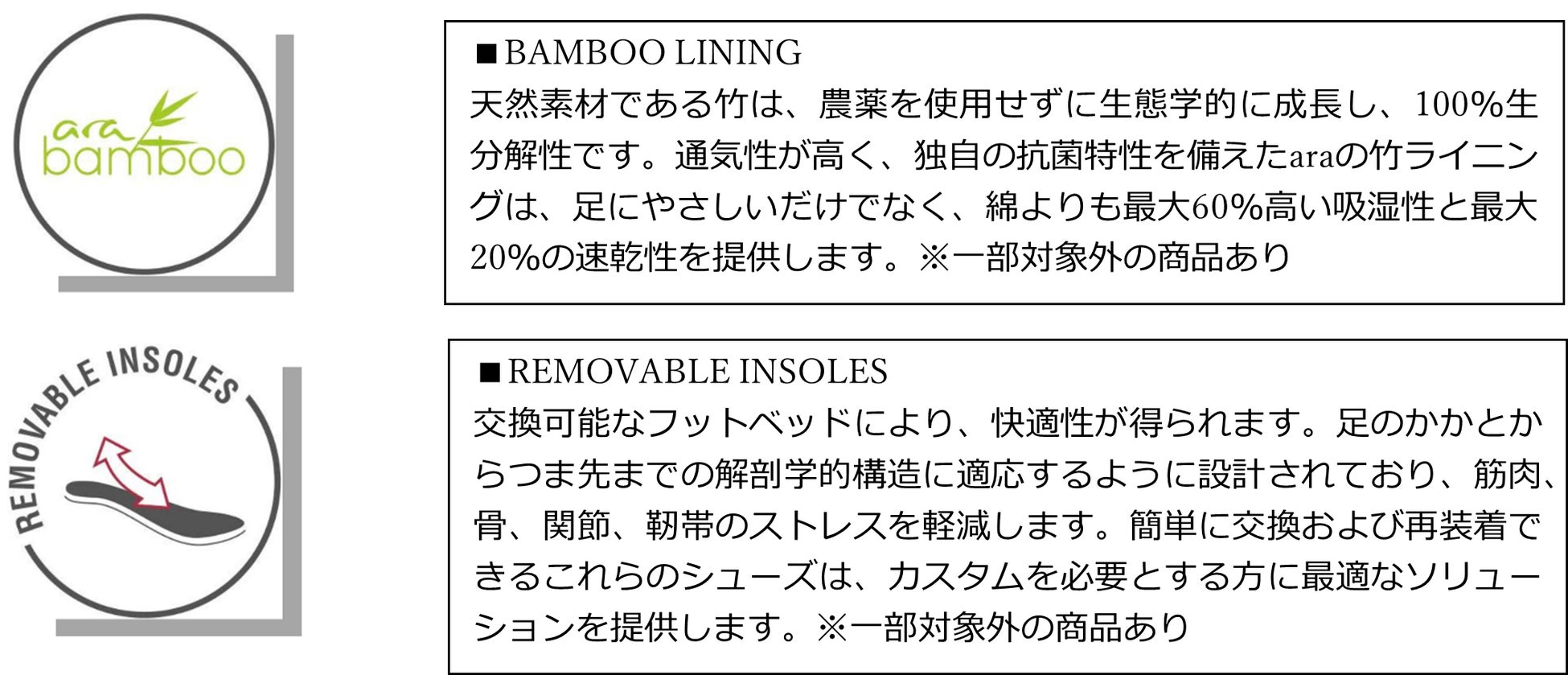 履き心地にもこだわりのあるara。土踏まずからかかとのフィット感も是非、お楽しみください。
