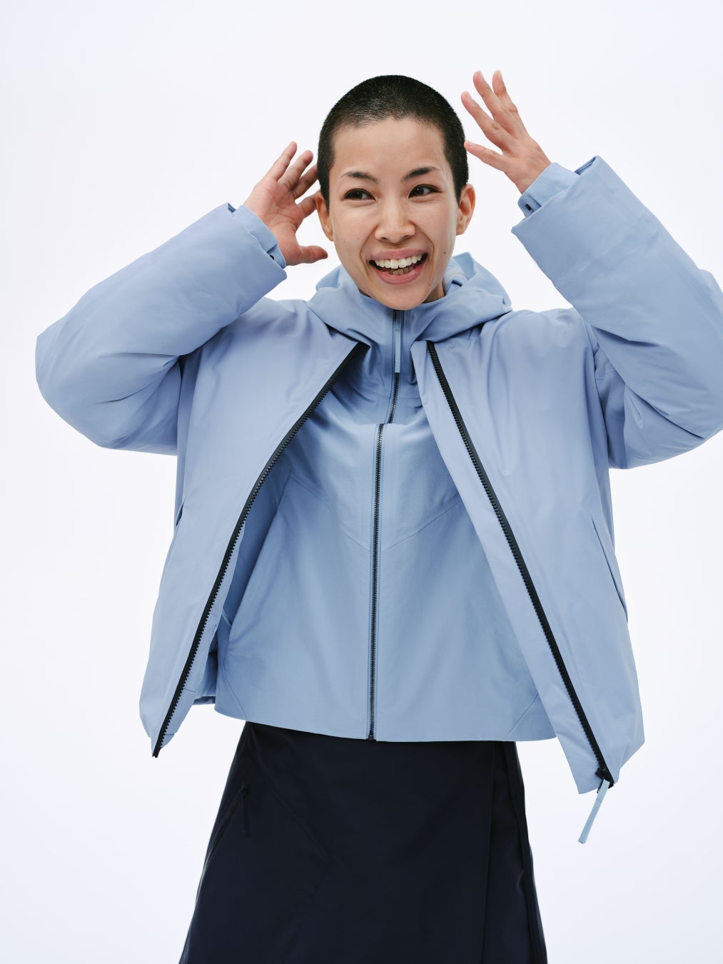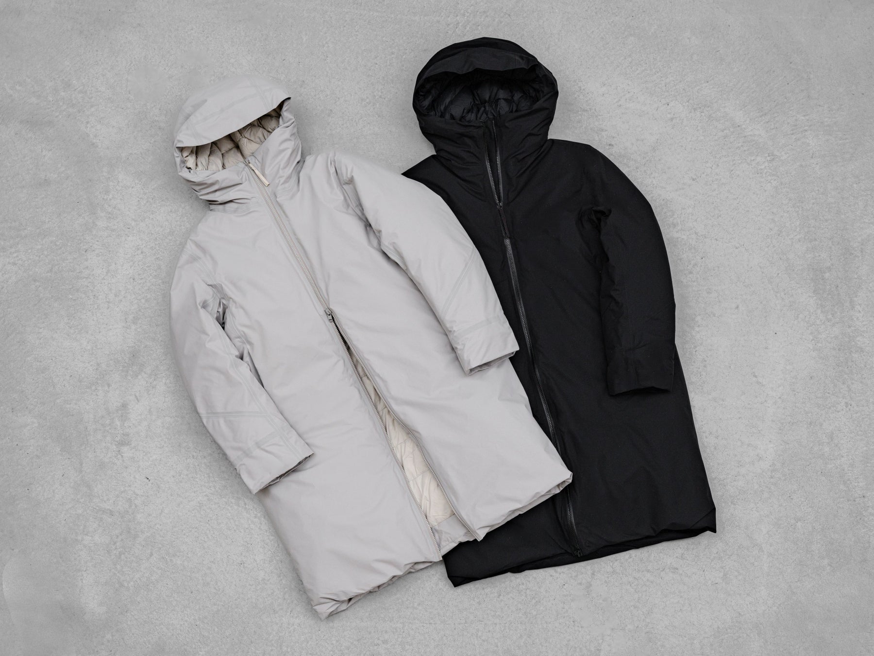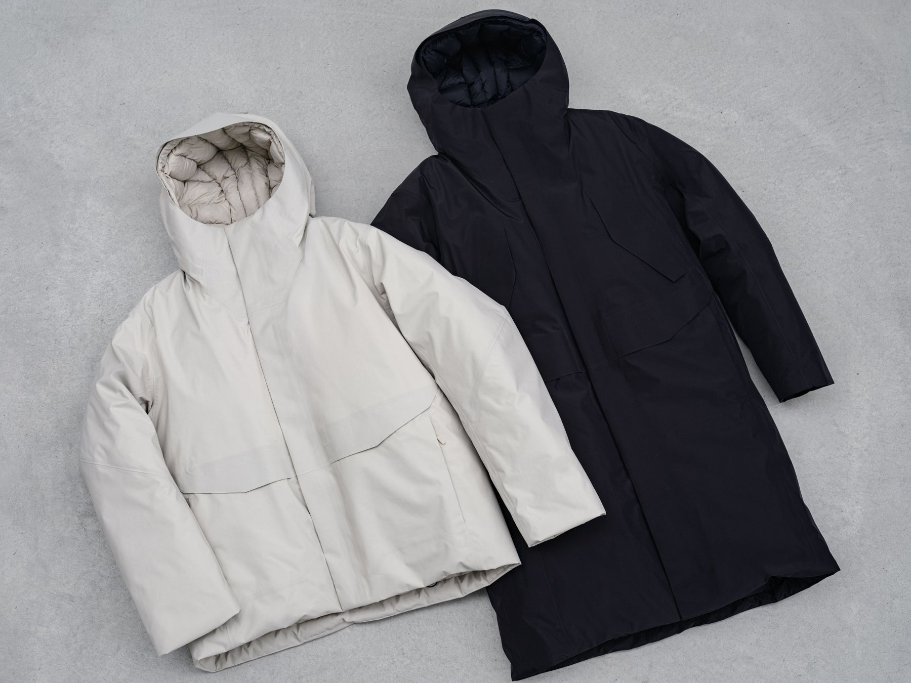 冬の厳しい都市環境に対応する最強の一着です。ePE メンブレンがラミネートされたGORE-TEX PRO仕様の完全防水・防風性と、850フィルパワーのグレイグースダウンによる驚異的な保温性を両立。湿気の多い箇所には化繊中綿を配置するコンポジットマッピング™技術により、常に快適な状態を維持します。ミニマルなデザインの中に、立体構造パターンによる抜群の動きやすさを実現。究極の機能美を追求した、ブランド最高峰のダウンジャケットとコートです。
