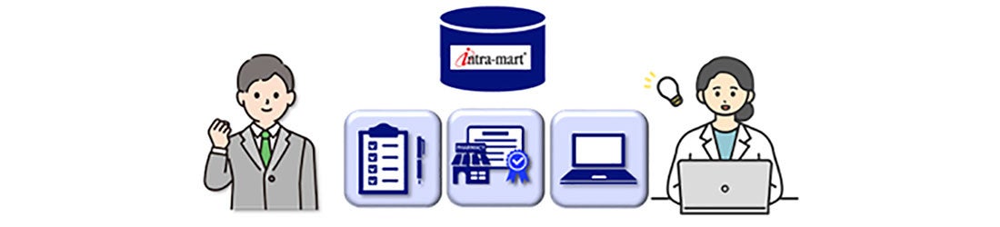ワークフロー・ローコード開発基盤であるintra-martをベースに調剤薬局様の声を基に開発。