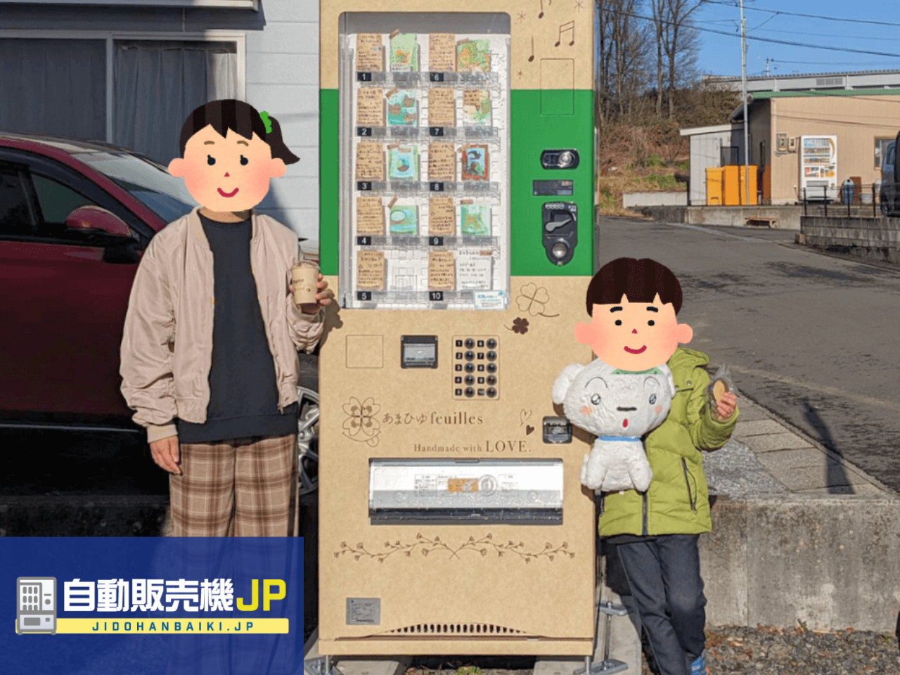 福島県須賀川市にお越しの際は、ぜひ「あまひゆfeuilles」様の自販機をご利用ください。人気No.1のチョコチップクッキーをはじめ、お客様一人ひとりの心に寄り添った、温かな手作りお菓子の味をいつでもお楽しみいただけることでしょう。