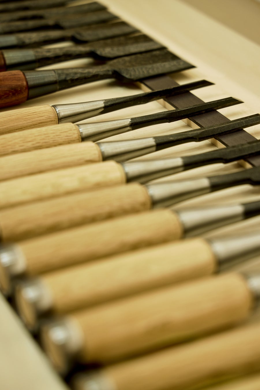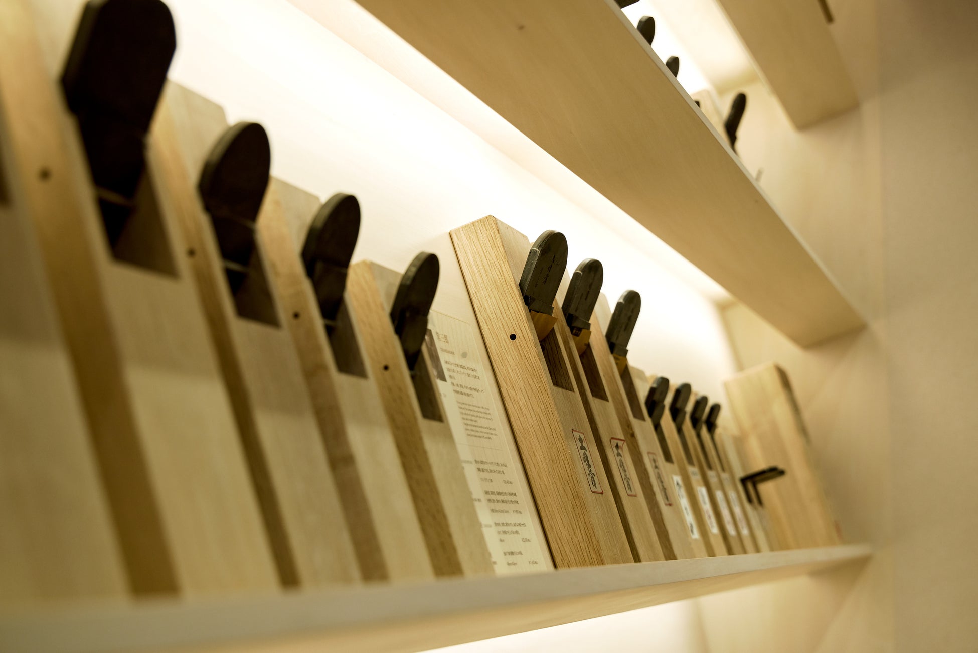 日本の優れた木工技術を支えてきた高品質な木工具。こうした道具を入手できる場が年々減少していくなか、遊朴館では木工技術を後世につなぐため、鑿(のみ)や鉋の販売をスタートしました。新潟や兵庫の鍛冶職人が手掛けた高品質な製品を取り扱い、その場で刃物の試し削りをしたり、使用方法について相談ができるカウンターを常設します。