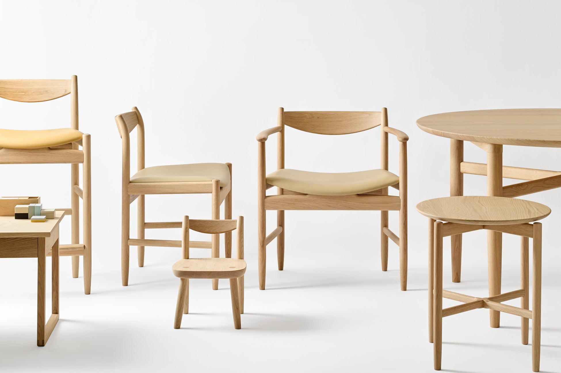 「CAFE & TABLE 工」にも使用されている「Armchair」や「Counter chair」をはじめ、椅子やテーブル、子供机などの新作家具や、三谷氏が過去に手掛けた作品のリデザインを含む玩具の新作がそろいます。三谷氏が提唱する生活工芸を体現する、この生まれたばかりのコレクションにご注目ください。