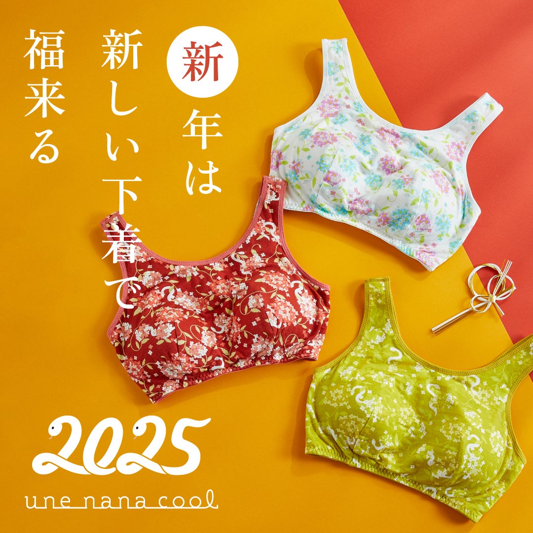 ワコールから生まれた下着屋さん「une nana cool(ウンナナクール)」は、2025年の干支である「乙巳」をテーマにデザインされた商品が登場しました。