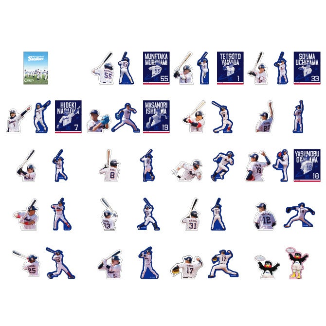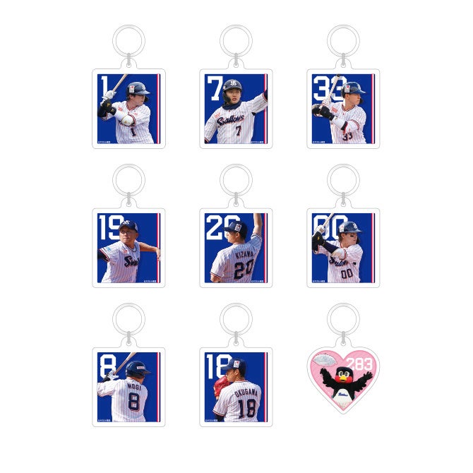 Happyくじ『東京ヤクルトスワローズ』は、全8等級+LAST賞の計41品で、特賞には村上宗隆選手、最後のくじを引いた人が受け取れるLAST賞では、山田哲人選手のBIGなアクリルスタンドをご用意。また、コイン入れやカード入れとしても使えるPVCケースや、スワローズの“応燕”には欠かせない“傘”に付けられるアンブレラマーカーなど、普段使いから観戦時にピッタリな商品まで豊富にラインナップしています。