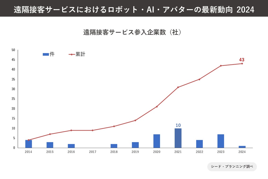●遠隔接客サービス参入企業は2014年4社から2024年には40社超える。