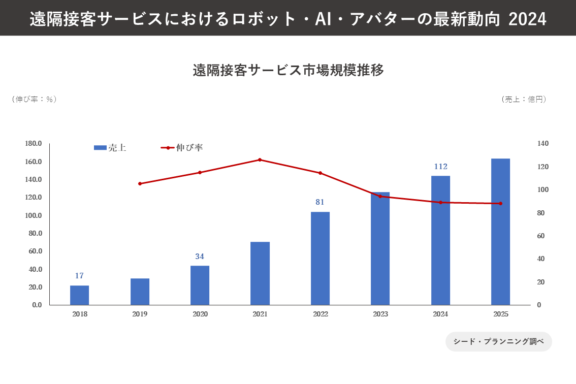 遠隔接客サービスにおけるロボット・AI・アバターの最新動向を調査 市場規模は前年対比13.4%増の127億円に