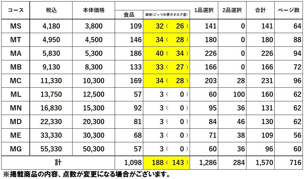②お客様のご要望を踏まえ、弔事カタログ「追想」MS~MCコース計5コースに生活雑貨の品揃