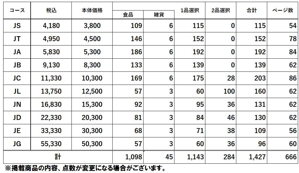 の商品などを取り揃えました。ご予算に合わせて10コースからお選びいただけます。