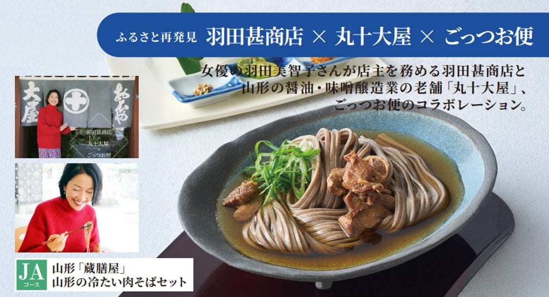 女優の羽田美智子さんが店主を務める羽田甚商店と山形の醤油・味噌醸造業の老舗「丸十大屋」、ごっつお便のコラボレーション。