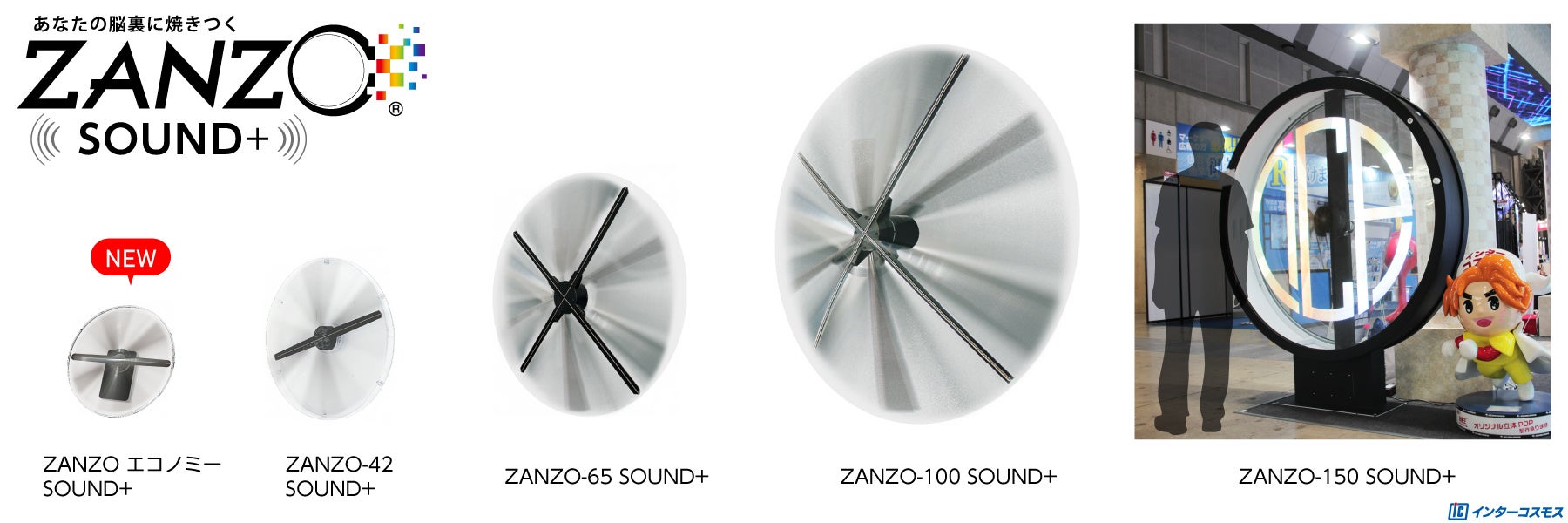 上記SOUND+シリーズのサイズラインナップ4種に、今回新たなサイズ【ZANZOエコノミーSOUND+】が追加されました。光の残像によるLED立体映像がまるで浮かんでいるように表現できてアイキャッチ効果抜群!