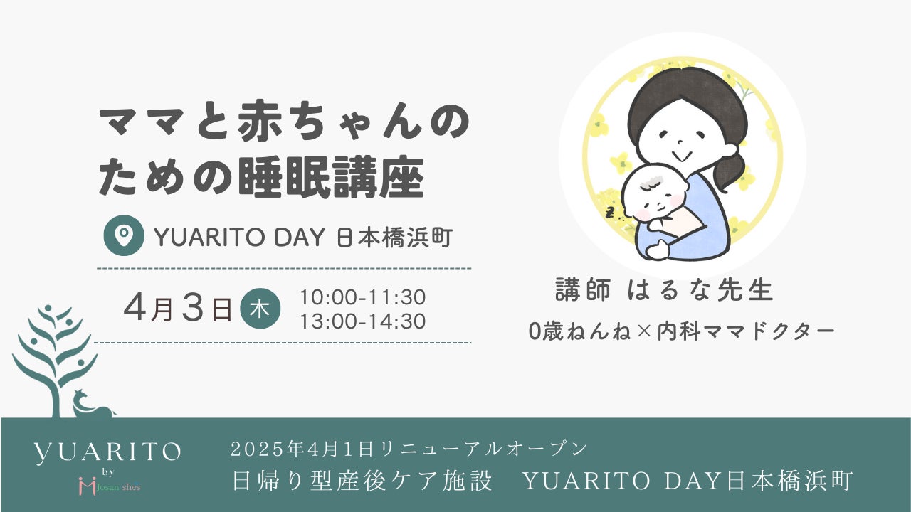 ママと赤ちゃんのための睡眠講座決定!4月3日(木)日帰り型産後ケア施設「YUARITO DAY」オープニングイベント