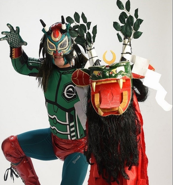 愛媛プロレスの「牛神ウシオニ・キング」と「鬼王丸」が力の限りを尽くし、最大風速で邪気を祓う熱波をお届けします。