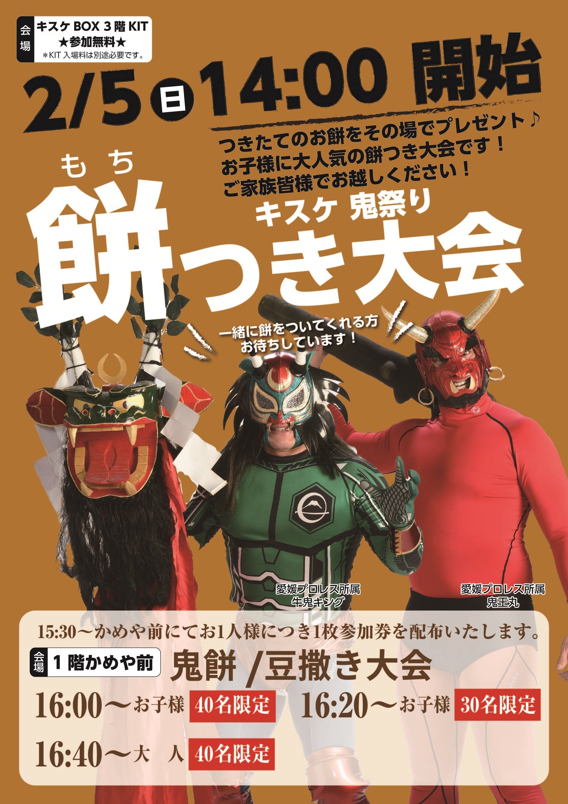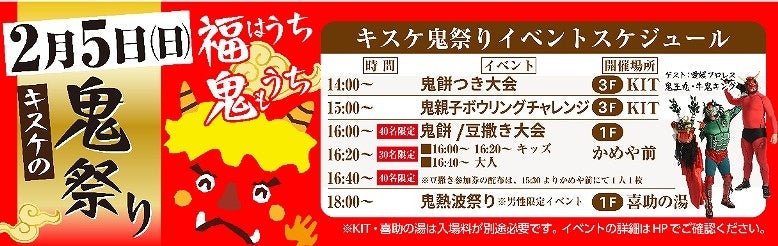 2023年2月5日(日)、鬼が「キスケBOX」をジャックする!? 鬼ボウリング・鬼餅つき・鬼豆まき・鬼ロウリュ!!
