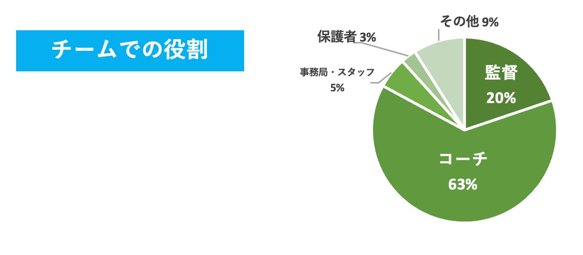 ・参加者の70%以上がスポーツの指導を行っており、監督・コーチが80%を占めていました。