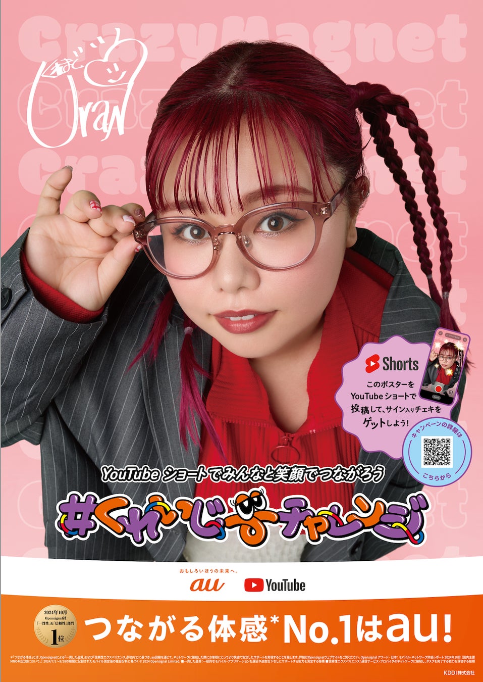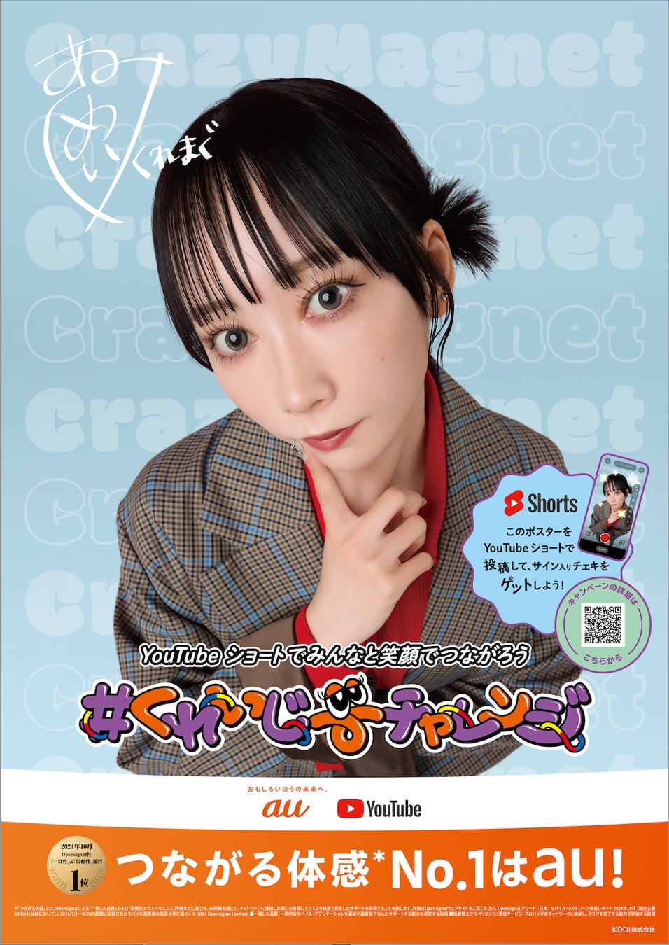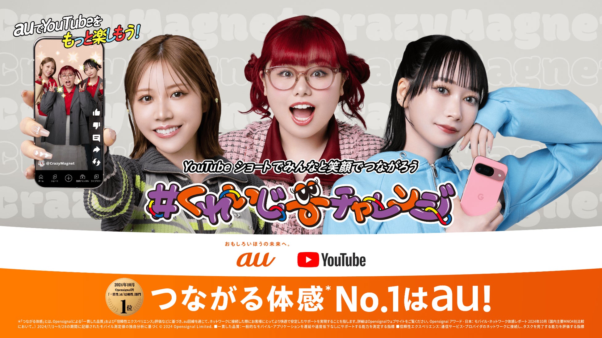 くれいじーまぐねっとが、auが"つながる体感※No.1"と5Gでの各種コンテンツ利用時の品質を評価する複数の「5G エクスペリエンス」の部門で、ビデオの1位を獲得したことを伝える公式アンバサダー「つなガールズ」に就任いたしました。