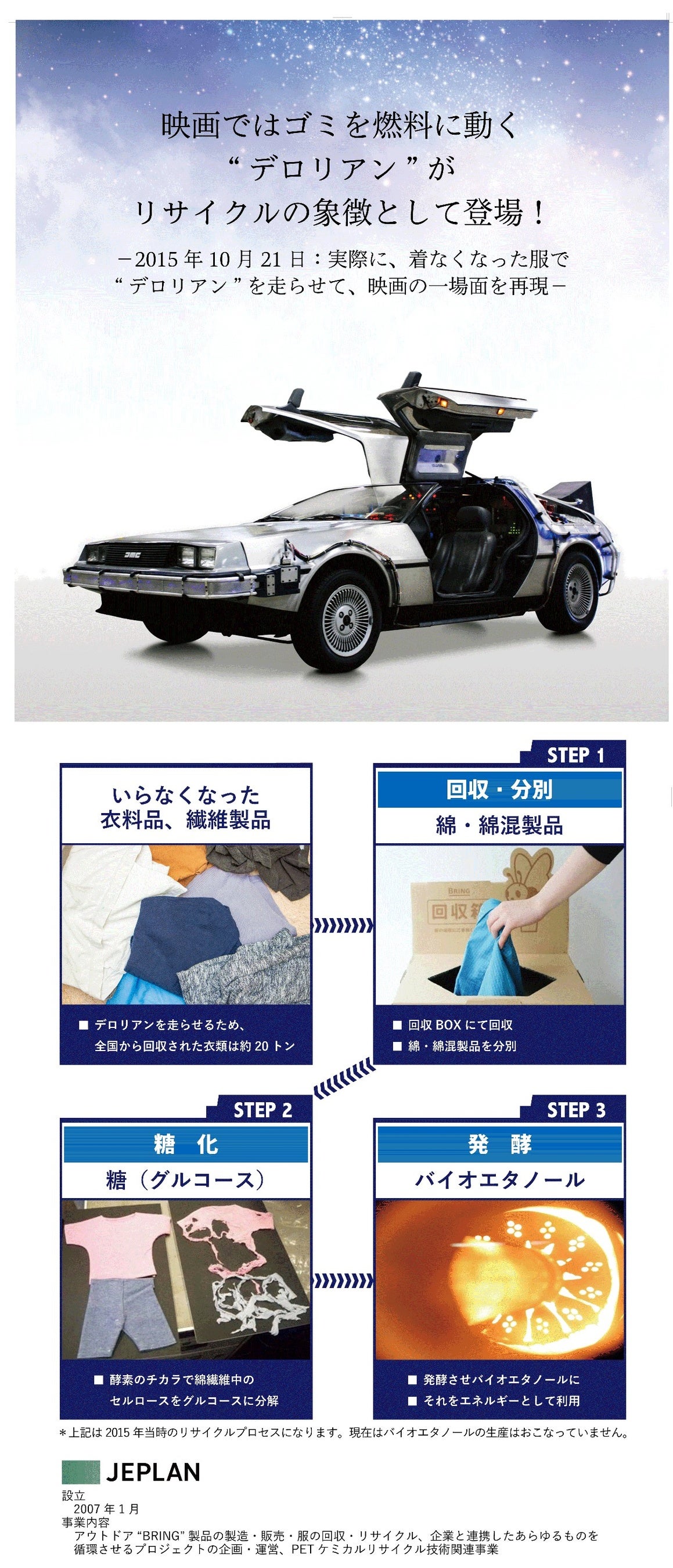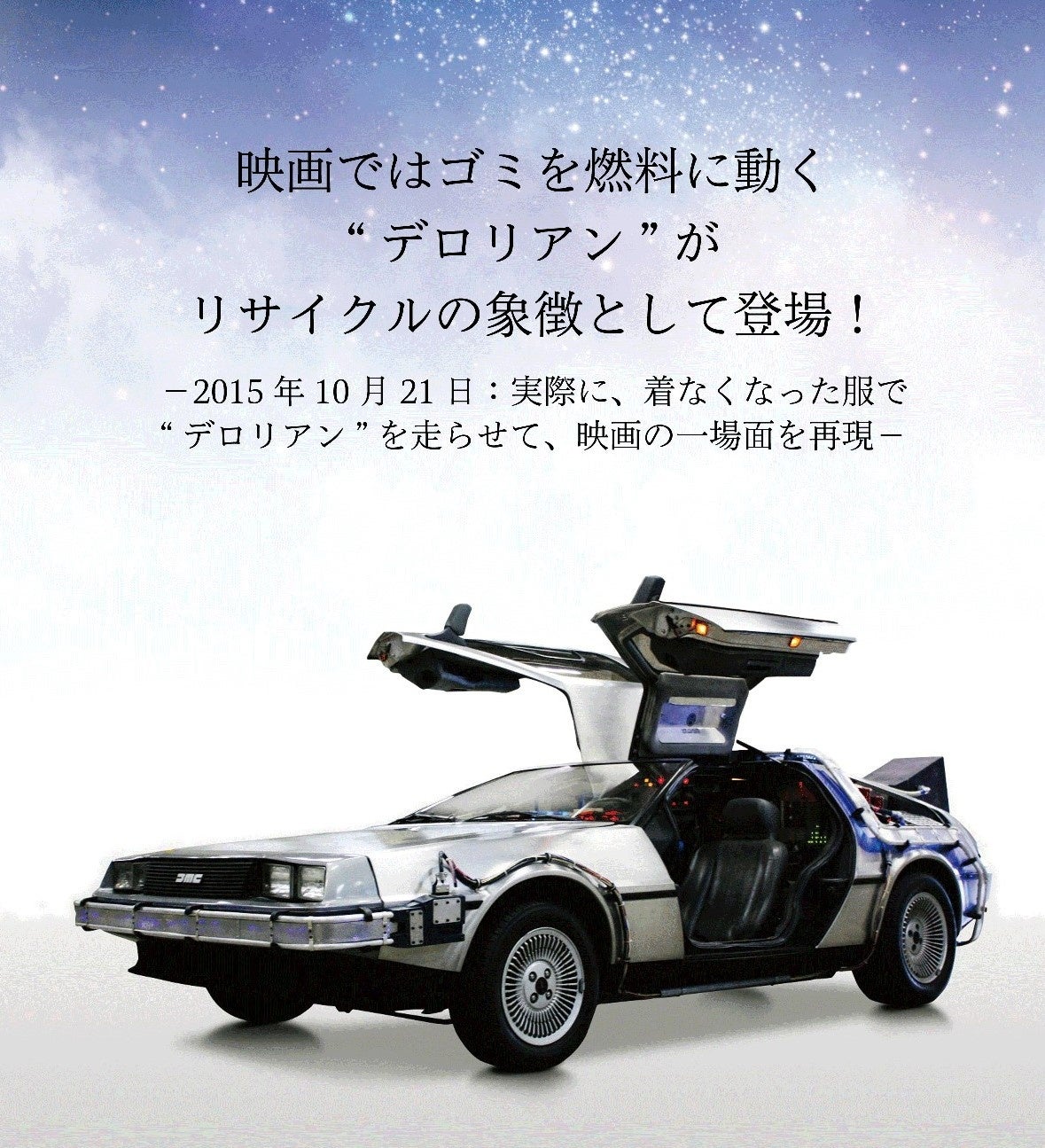・衣服をリサイクルして作られたバイオ燃料で走行したことがある「デロリアン」の車両展示(5日のみ)