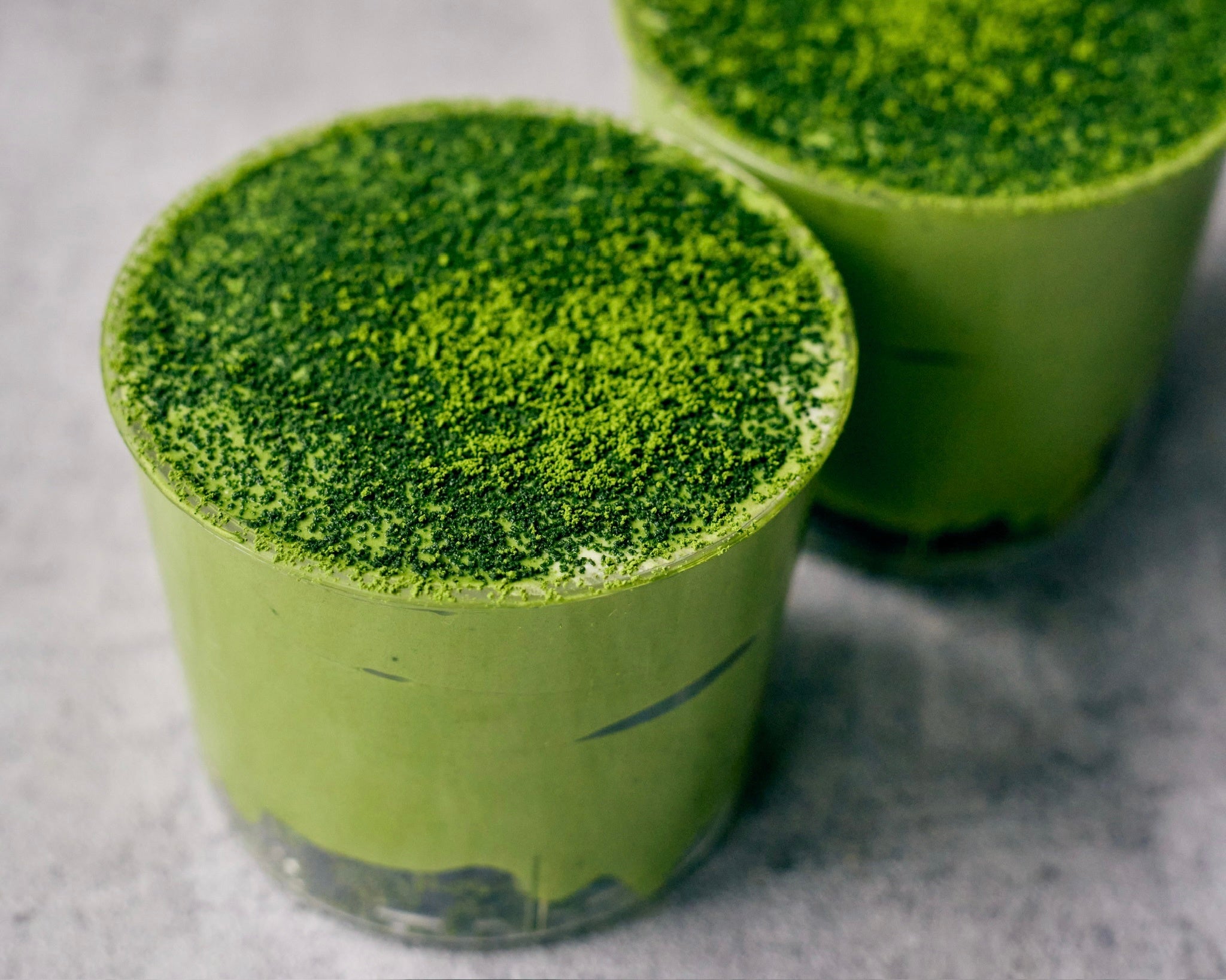 なめらかな抹茶のムースと、砕いた「八十八クッキー」を合わせることで食感の変化をお楽しみいただけます。