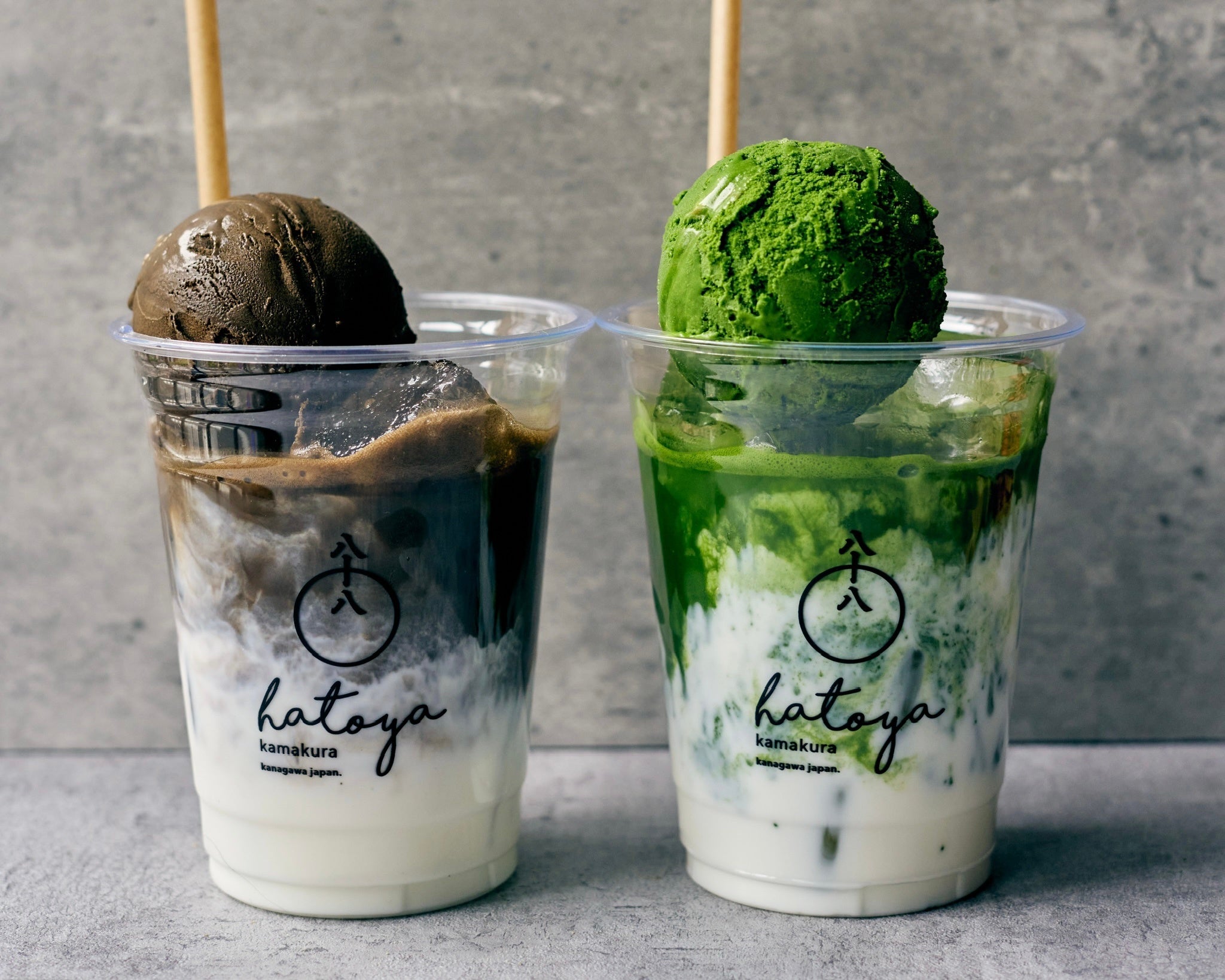 ドリンクは、ご注文ごとに茶筅(ちゃせん)で点ててご提供する「抹茶ラテ」や「焙じ茶ラテ」の他、濃厚な抹茶とコクのある“波照間産黒糖”の抜群の相性が楽しめる「八十八黒糖シェイク」や、抹茶の味わいを苺の酸味で包み込む「八十八苺シェイク」をご用意。