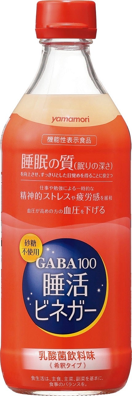 ヤマモリの「GABA100睡活ビネガー」は、2023年9月に発売。半年間(2023年9月~2024年3月)の販売は当初予測の500%を上回る好調推移を続けています。1杯30ml(4倍希釈時120ml)で100mgのGABAが摂取できる設計です。