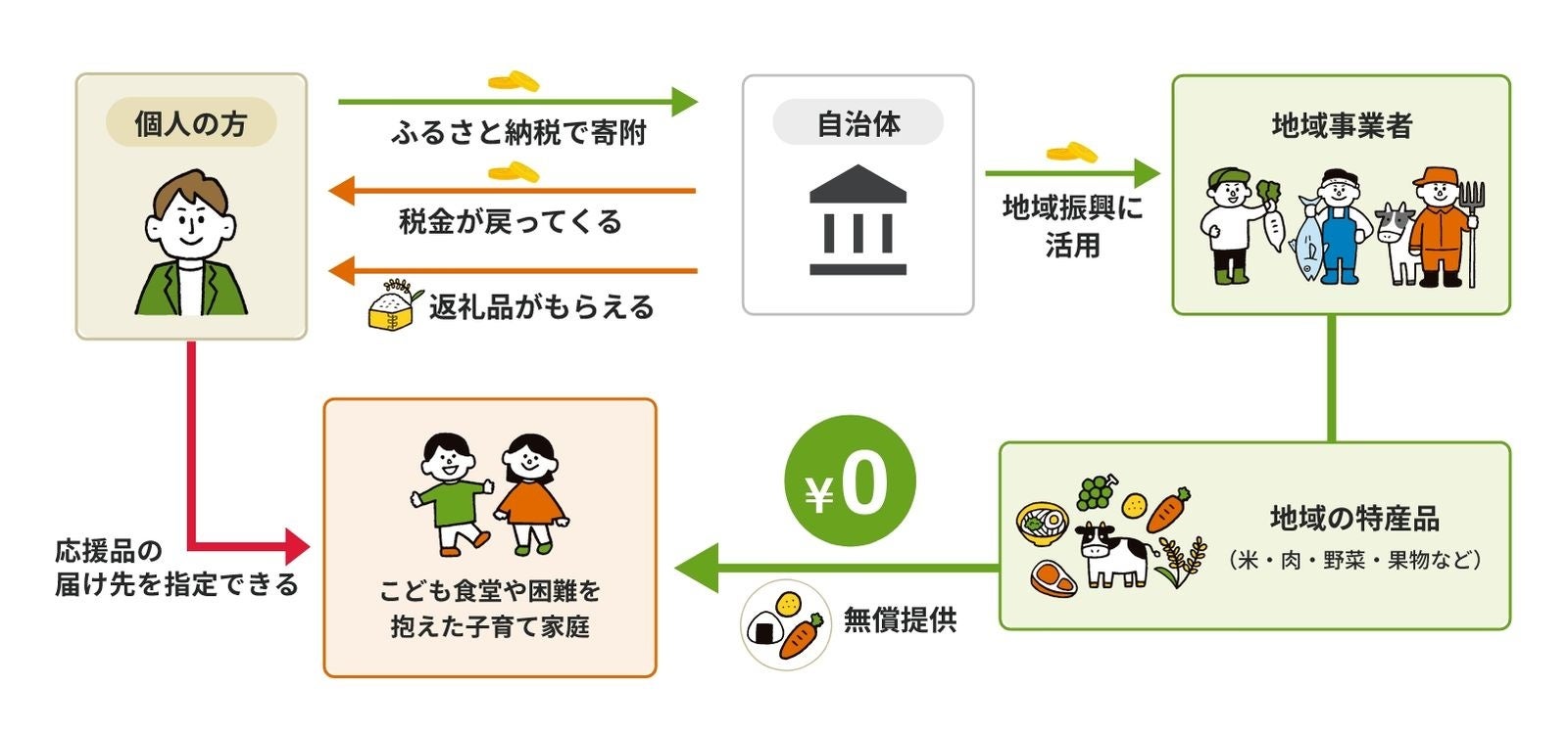 寄附者は、他のふるさと納税サイトと同じ返礼率で返礼品も受け取りながら、こどもの支援に参加できます。