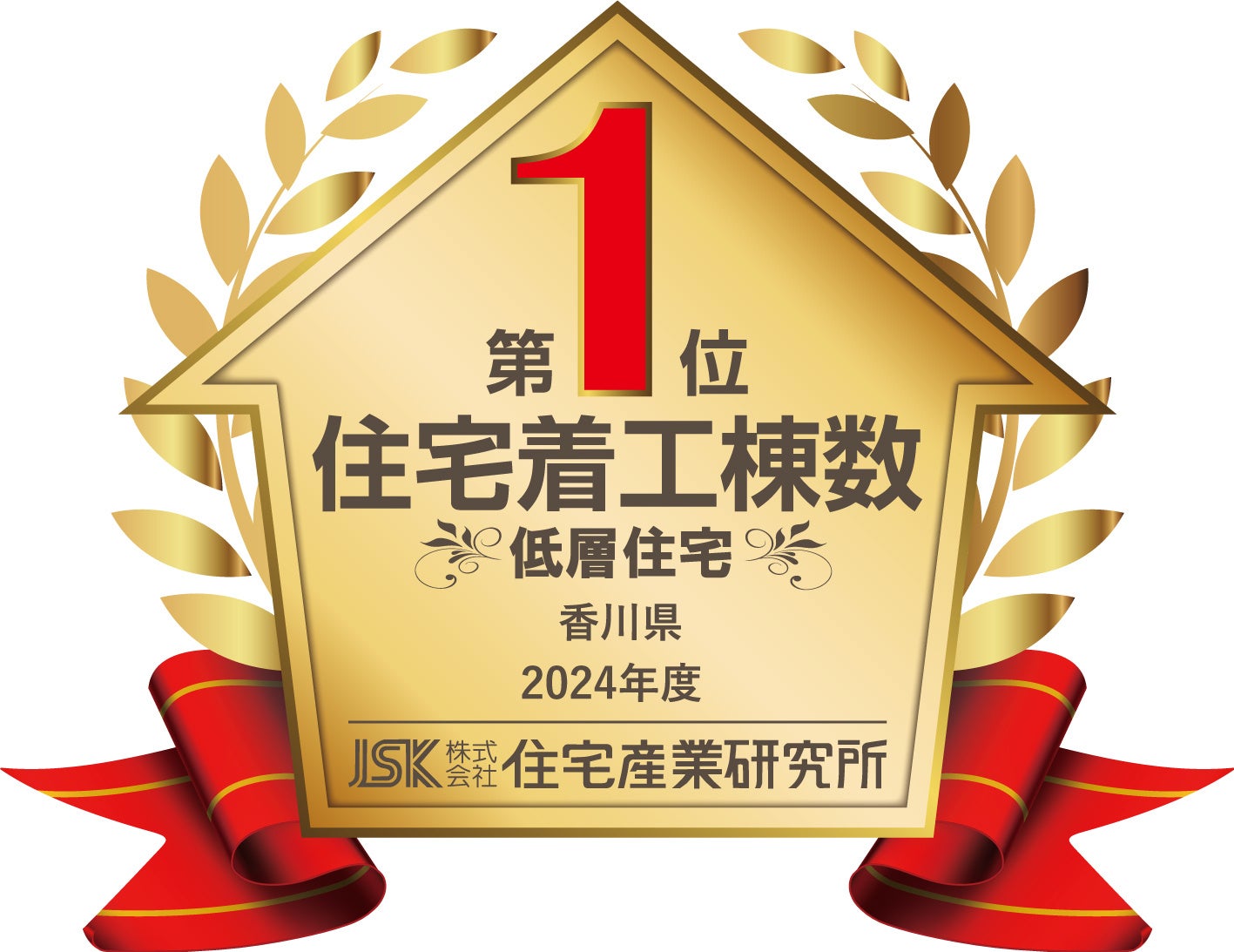 この度、香川県における2024年度の住宅着工棟数第1位※を獲得しました。 本実績は、2024年度に確認申請が許可された物件のうち、2025年7月末日までに建築計画が確認できた低層住宅総数が対象となるもので、2016年のブランド設立以来初の獲得です。これからも、長く安心して暮らしていける住まいをご提案できるよう邁進してまいります。