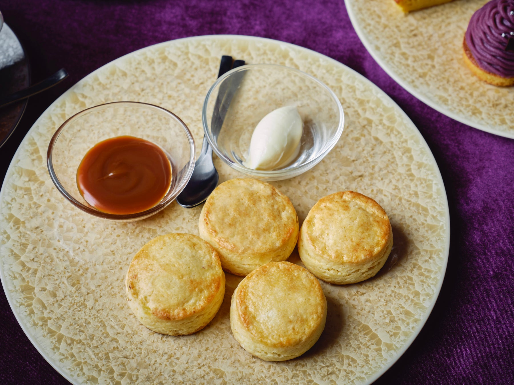 紅はるかスコーン、プレーンスコーン(キャラメルソース&クロテッドクリーム付き)