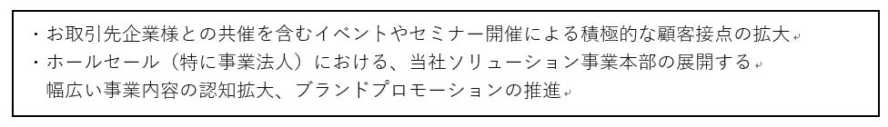 今回リニューアルしたイベントスペースにつきましては、ソリューション事業本部主催のセミナー・イベントの会場としての利用に留まらず、学生の採用活動や各種説明会の開催などの全社利用、提携事業者との共同セミナーの開催なども含め、様々なステークホルダーとの間で直接接点を持つことのできるスペースとして活用を検討してまいります。