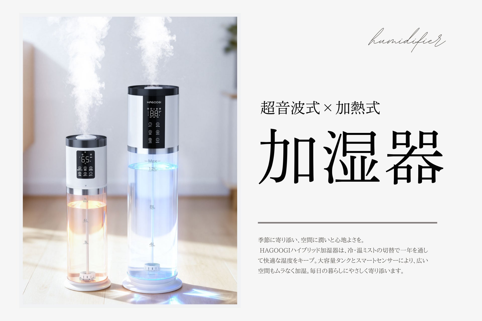 HAGOOGIは、加熱式と超音波式を組み合わせたハイブリッド加湿方式を採用した「ハイブリッド加湿器」を発売いたしました。