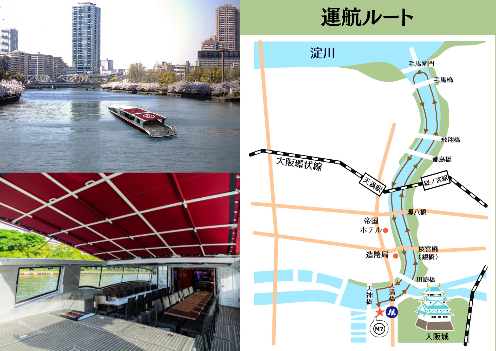 《期間限定!》最新鋭の次世代EV(電気)船「Queen Bee M7」で大阪の街並みと船上でのお花見を楽しめる「桜クルーズ」を期間限定で予約受付開始!!