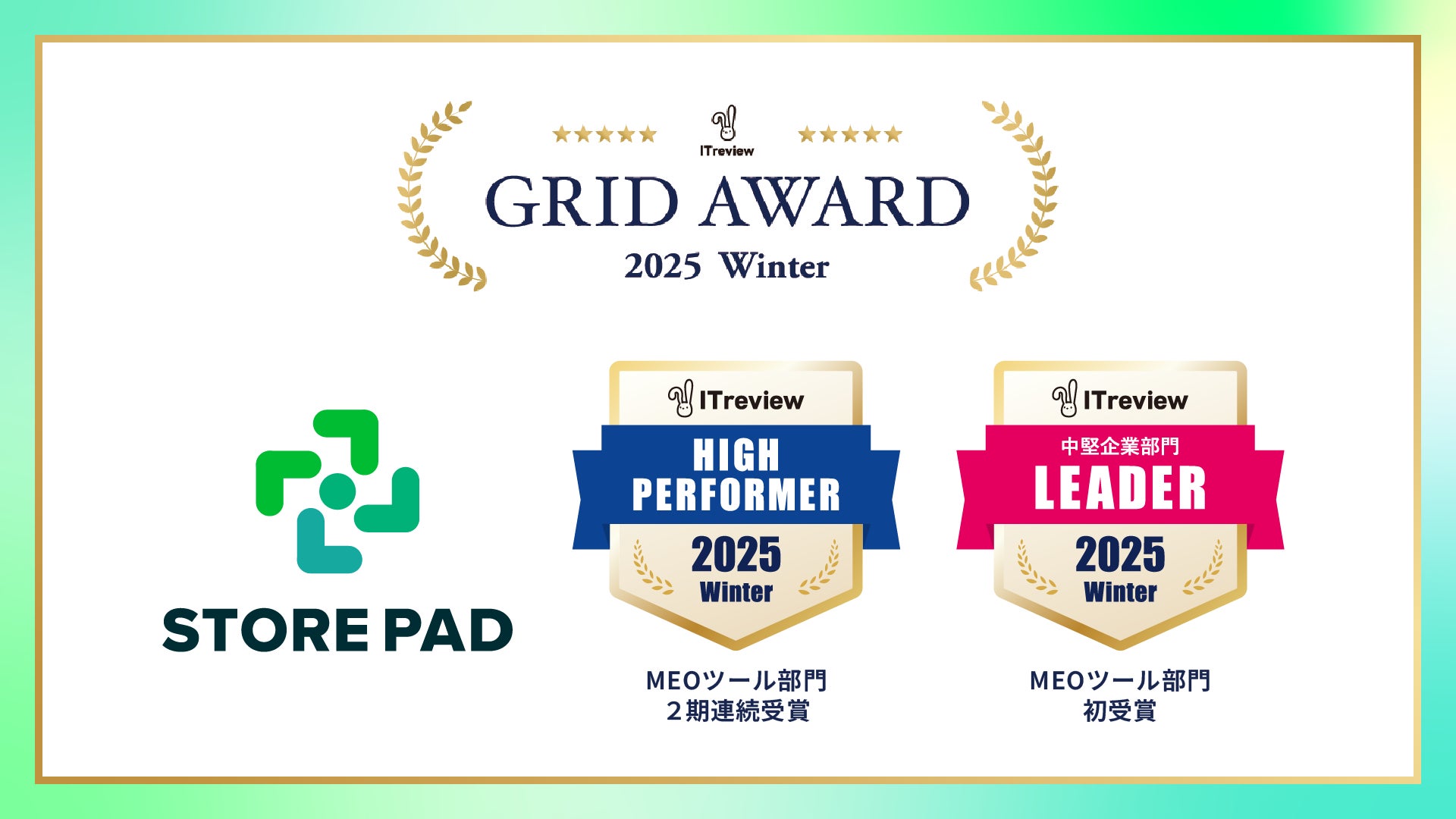 「STOREPAD(ストアパッド)」が「ITreview Grid Award 2025 Winter」にて2期連続となる"High Performer"、初となる"Leader"をW受賞