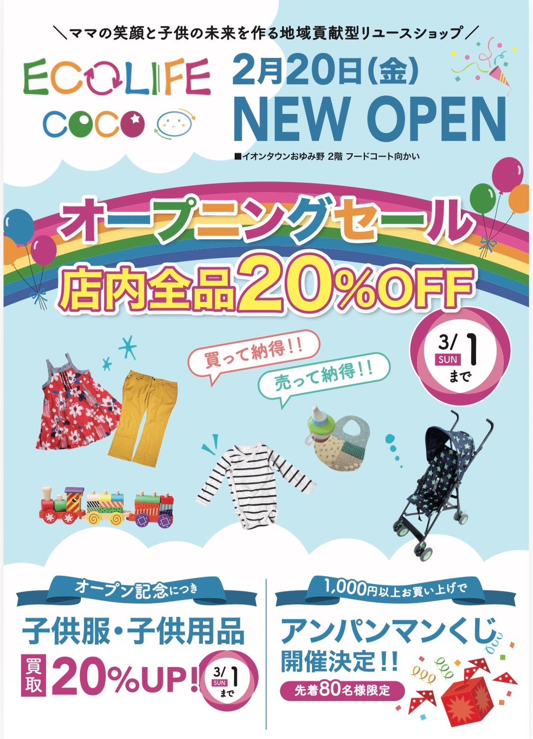 子供服リユースショップECOLIFE COCO(エコライフココ)「イオンタウンおゆみ野店」のオープンを記念し、オープニングイベントを開催いたします。