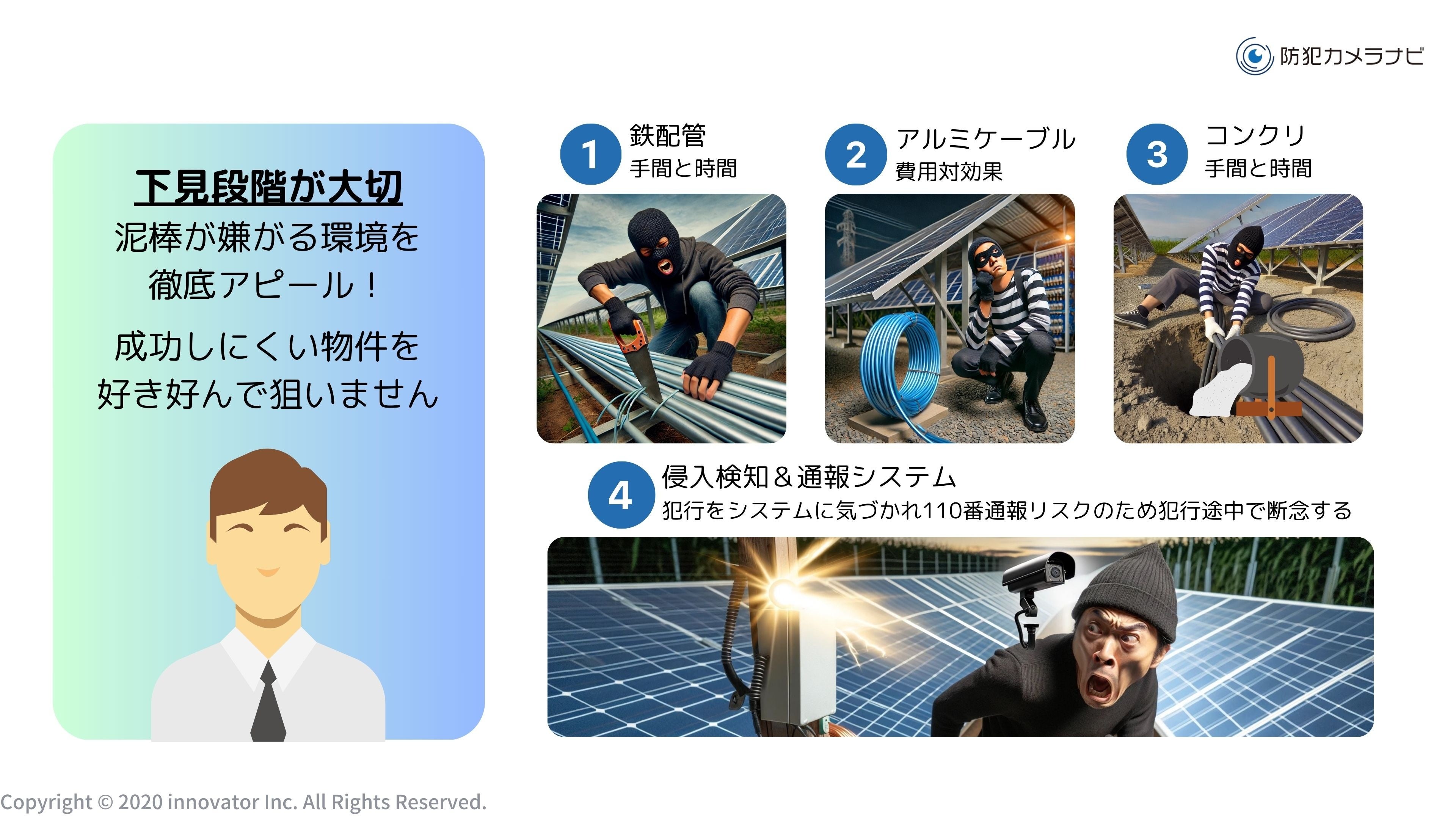 太陽光の銅線ケーブル盗難対策で「警備員」とか「録画」とか『入られた後のことばかり考えてはいませんか?』自分の親なら絶対薦める!手間や時間は泥棒の理想を打ち壊す、まずは優先すべき防犯対策はコレ!