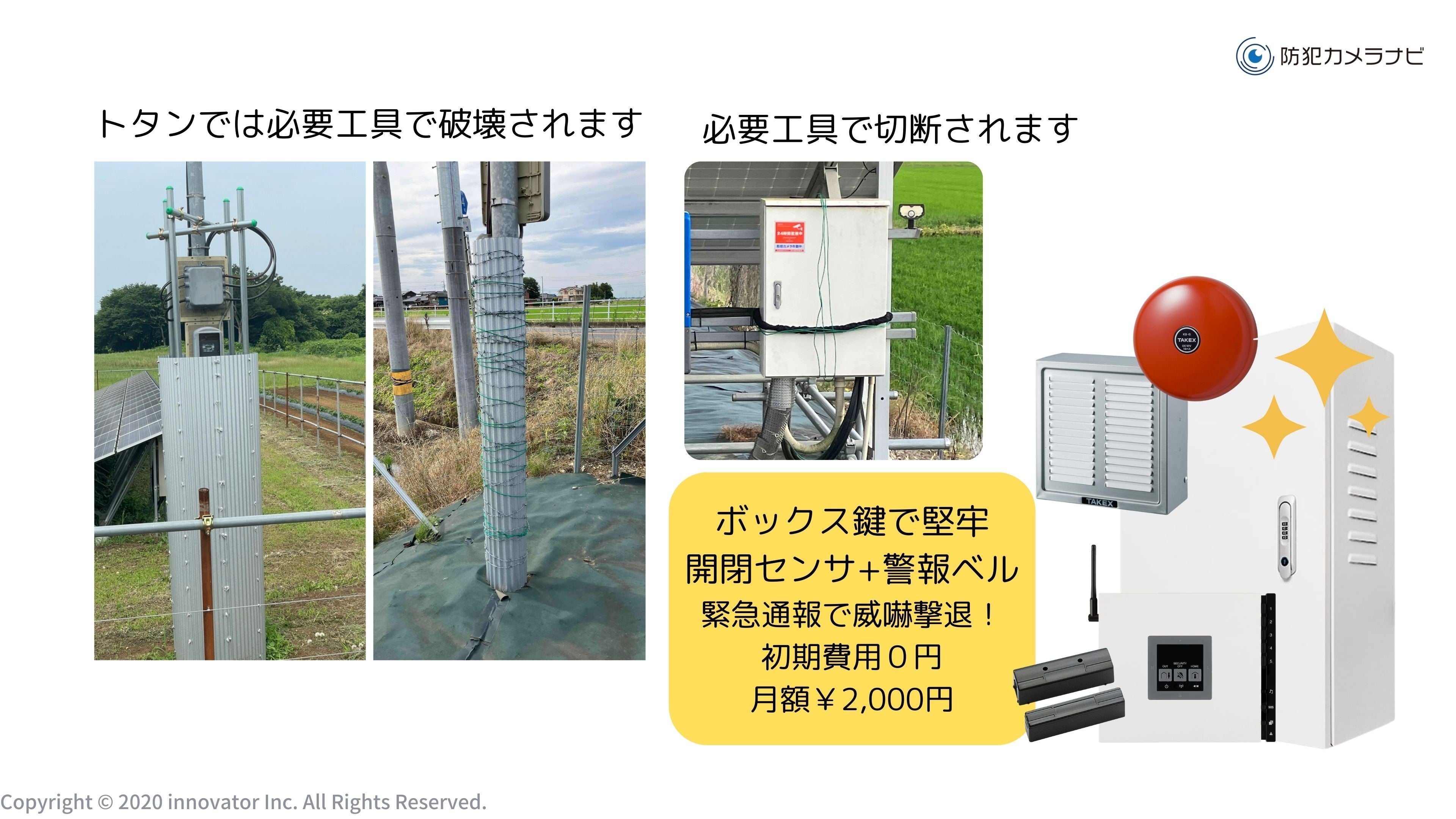 太陽光発電所の銅線盗難対策(ケーブル盗難)の決定版!次世代防犯カメラ「攻撃型次世代しゃべるカメラ雷神」
